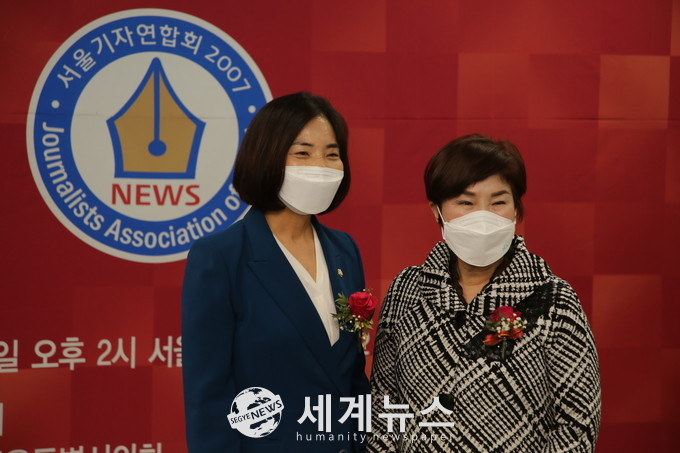 | ▲ 지난 8일 오후 서울기자연합회 ‘2021 지방자치 大賞’ 시상식에서 김안숙(왼쪽) 서초구의회 의장이 의정대상 수상을 더불어민주당 전혜숙 최고위원이 축하와 기념촬영을 하고 있다. (기자단 제공) |