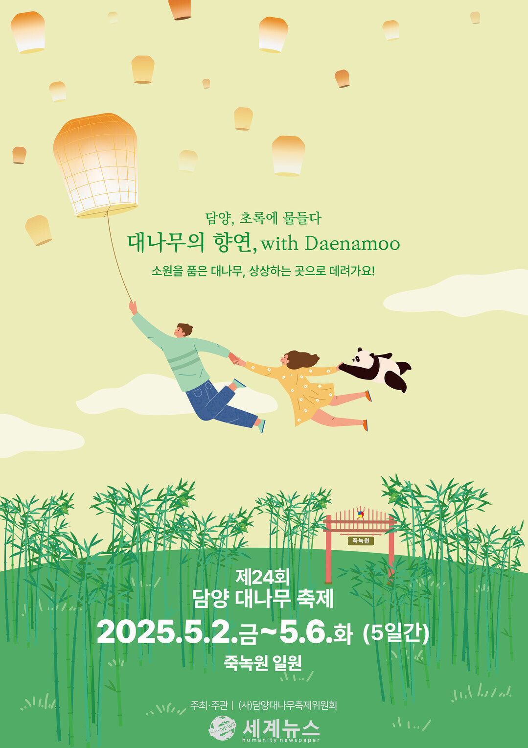 [세계뉴스 = 양경희 기자] 담양군이 올해 제24회 담양 대나무축제를 관광객이 맘껏 연휴를 즐길 수 있도록 5월 2일부터 5월 6일까지 5일간 죽녹원 일원에서 개최한다고 밝혔다.