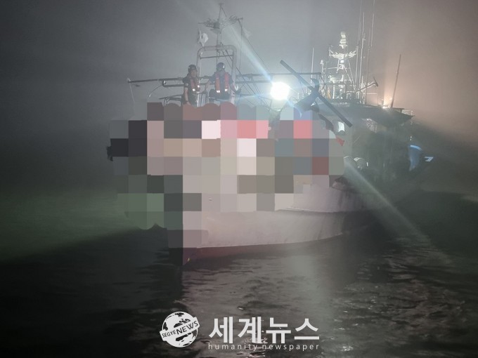 이날 오전 4시 24분에 해경 경비함정이 현장에 도착 즉시 사고 선박에 올라타 승선원(8명)전원 안전확보