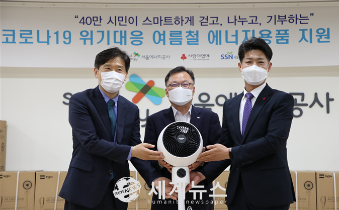 이에 공사는 7일 서울 목동 본사 강당에서 김중식 서울에너지공사 사장과 에너지복지 지원사업 수행기관 대표로 김현훈 서울특별시사회복지협의회 회장, 김진곤 서울사회복지공동모금회 사무처장이 참석한 가운데 여름철 에너지용품 지원 전달식을 개최했다.
