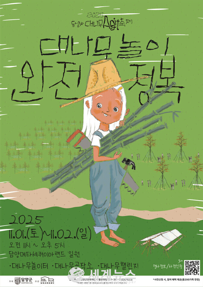 [세계뉴스 = 양경희 기자] 담양군문화재단이 주최하는 '2025 담양대나무아지트축제: 대나무놀이X완전정복'이 오는 11월 1일부터 2일까지 담양 메타세쿼이아랜드 일대에서 열린다.