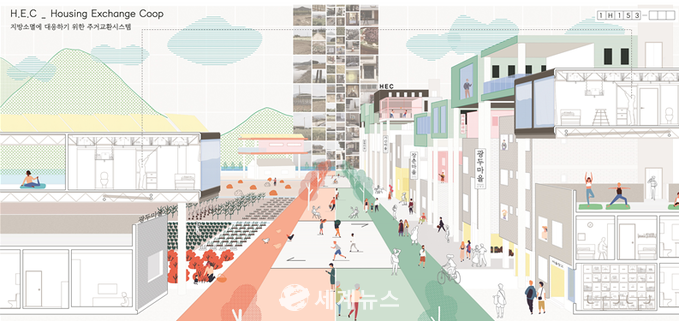 [세계뉴스] 전승원 기자 = 서울주택도시공사가 주최한 제5회 SH청년건축가 설계공모전에서 숭실대학교 김경환·오종운·이민영씨 출품작 ‘Housing Exchange Coop’가 스튜디오 부문에서, 한국예술종합학교 서경택·이승훈·박소진씨 출품작 ‘호호문구점+호호하우스’가 일반 부문에서 각각 대상을 차지했다.