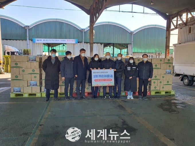 [세계뉴스 윤소라 기자] 서울시농수산식품공사(사장 김경호)는 가락시장 유통인의 이웃사랑 모임인 (사)희망나눔마켓(이사장 이원석)과 함께 지난 4일 가락시장 인근지역 취약계층과 복지시설에 제수용품 300세트와 과일을 전달했다고 밝혔다.