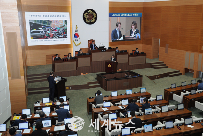 김 의원은 지난 수년간 예산부족 등의 이유로 해결의 어려움을 겪고 있는 관내 영화초의 통학로와 영등포중의 노후 된 학교시설물 안전문제에 대해 대책마련을 촉구했다.