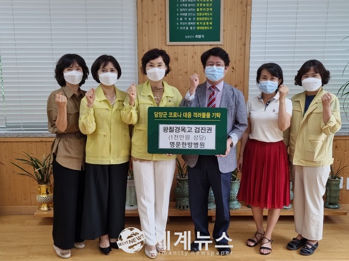 [세계뉴스 양경희 기자] 담양군은 대덕면에 소재한 명문한방병원에서 지난 20일 담양군보건소를 방문해 코로나19 방역을 위해 수고하는 방역 관계자에게 전달해달라며 경옥고, 공진단, 건강검진권 등 (1,000만 원 상당)를 기탁했다고 전했다.