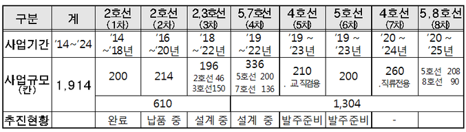 '14년부터 완료‧추진 중인 1단계 610칸+사용연수 높은 전동차 교체 2단계 추진