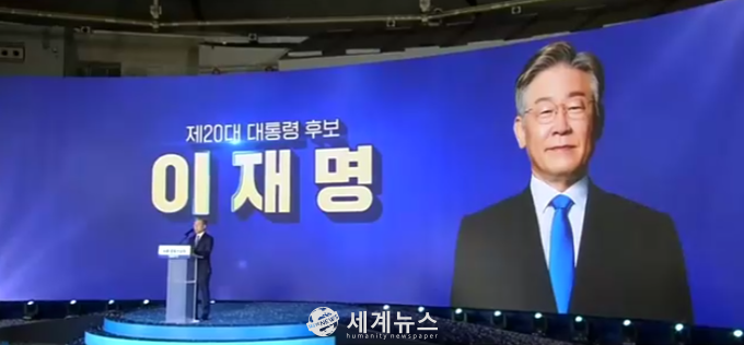 존경하는 국민 여러분, 더불어민주당 당원동지 여러분! 제 20대 대한민국 대통령선거 더불어민주당 후보, 이재명 인사드립니다.