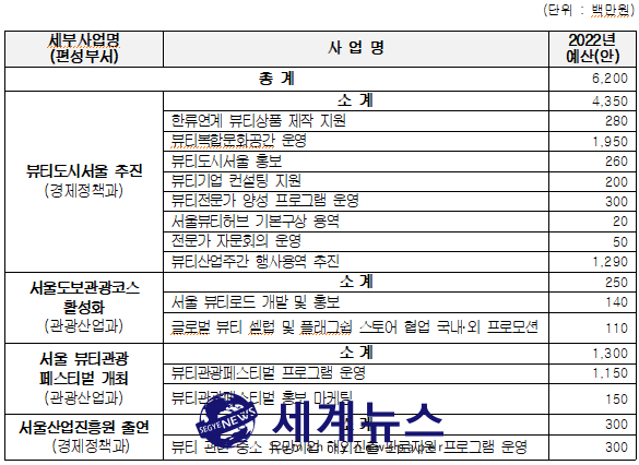 | ▲ 2022년 뷰티도시서울 관련 예산편성내역. |