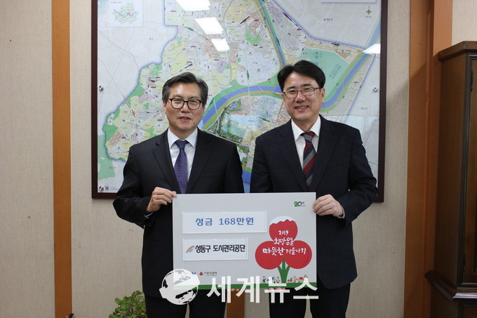 [세계뉴스] 조홍식 기자 = 성동구도시관리공단(이사장 김종수, www.happysd.or.kr) 임직원이 지발적으로 모은 성금을 ‘2019 희망온돌 따뜻한 겨울나기’에 168만 원을 기부했다. 지난해에 이어 두 번째다.