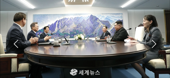 | ▲ 문재인 대통령과 김정은 북한 국무위원장이 '2018남북정상회담' 평화의집에서 모두발언을 하고 있다. |