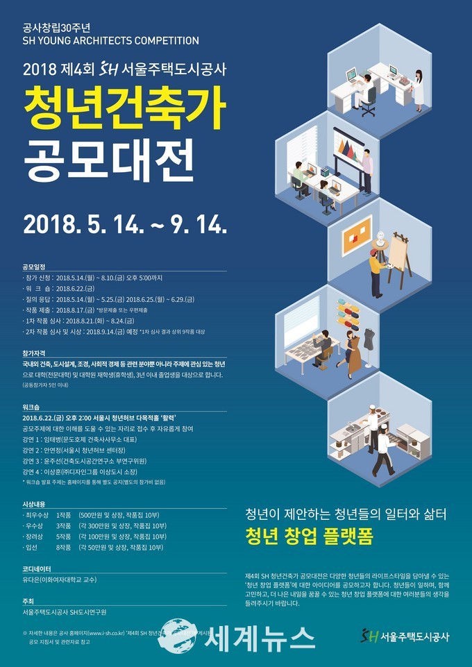 [세계뉴스] 전승원 기자 = SH서울주택도시공사는 청년이 제안하는 청년들의 일터와 삶터, ‘청년 창업 플랫폼’을 주제로 ‘제4회 SH청년건축가 공모대전’을 진행한다.