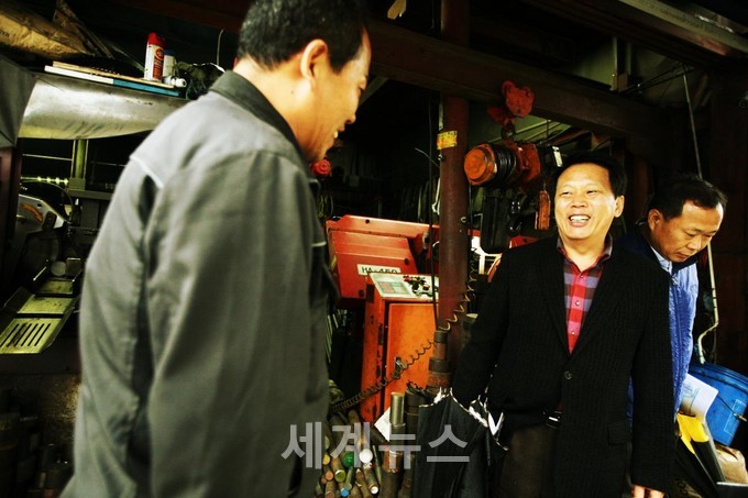 | ▲ 이성 구로구청장(가운데)은 신도림동 제조업체를 방문하여 기업인들의 현장목소리를 청취했다. © 세계뉴스 |