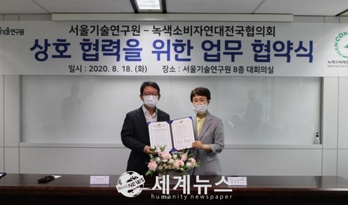 [세계뉴스 차성민 기자] 디지털·그린 뉴딜 시대의 시민 중심·소비자 중심 기술·정책 개발을 위해 서울기술연구원(원장 고인석)과 녹색소비자연대전국협의회(공동대표 윤영미)가 함께 나설 계획이다.