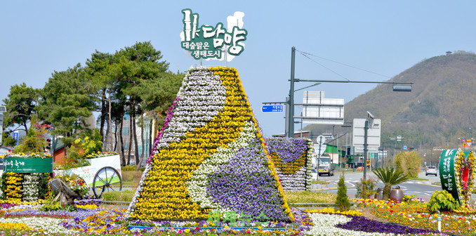 담양군은 방문객들이 많이 찾는 장소에 꽃단장에 나선 가운데, 담양버스터미널 앞 회전교차로에 조성된 꽃 조형물이 봄의 향기를 전하고 있다.