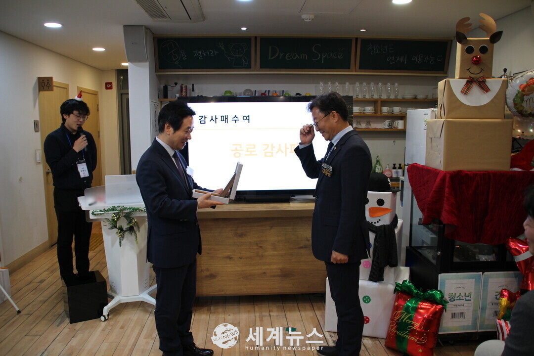 [세계뉴스 = 윤소라 기자] 서울시의회 환경수자원위원회 이용균 의원(더불어민주당, 강북구3)이 지난 5일 시립강북청소년드림센터 성과공유회에서 청소년 보호 및 자립지원 정책 발전에 기여한 공로를 인정받아 감사패를 수상했다.