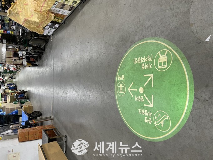 [세계뉴스 차성민 기자] 서울시농수산식품공사(이하 ‘공사’)는 가락몰을 방문하는 고객들이 원하는 장소를 보다 쉽게 찾아갈 수 있도록 빔 조명을 활용한 바닥 안내 표시체계를 도입했다.