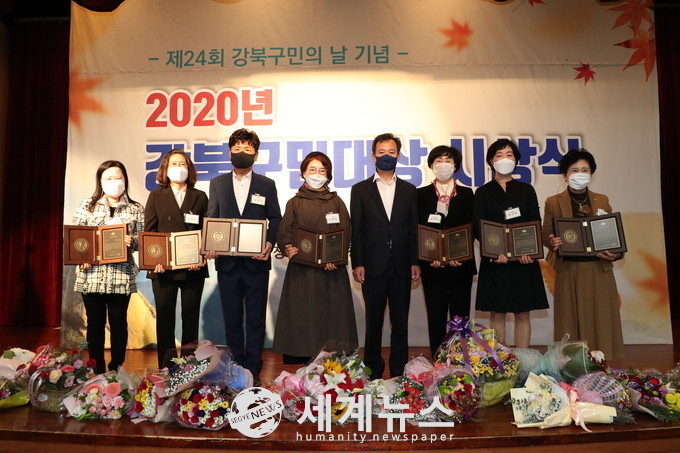 [세계뉴스 조홍식 기자] 서울 강북구(구청장 박겸수)가 28일 구청 대강당에서 ‘2020 강북구민대상’ 7개 분야 수상자들에게 시상했다.