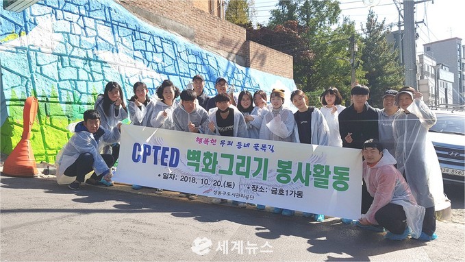 [세계뉴스] 윤소라 기자 = 성동구도시관리공단(이사장 김종수, www.happysd.or.kr)이 지난 20일, 금호1가동에서 벽화그리기 봉사활동을 실시했다. 1365 자원봉사 포털사이트를 통해 모집한 주민과 임직원 총 20명이 함께 30m 가량의 옹벽을 알록달록 꾸며나갔다.