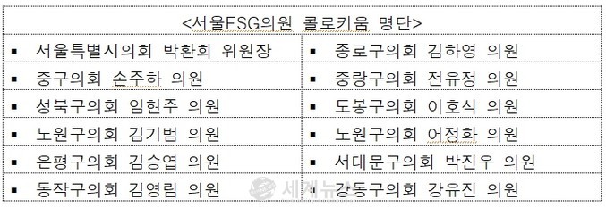 [세계뉴스 윤소라 기자] 서울특별시의회 박환희 운영위원장(국민의힘, 노원2)이 ‘서울ESG의원 콜로키움’을 출범시켰다.