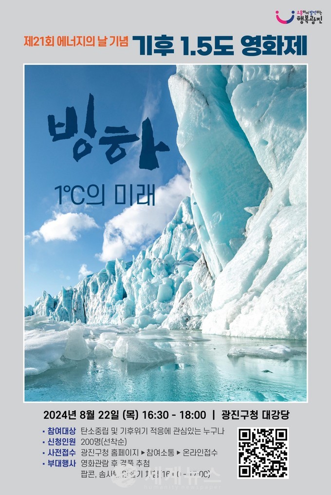 [세계뉴스 조홍식 기자] 서울 광진구(구청장 김경호)가 오는 22일 구청 대강당에서 제21회 에너지의 날을 맞아 ‘기후 1.5도 영화제’를 개최한다.