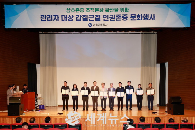 [세계뉴스 전승원 기자] 서울교통공사(사장 백호)는 서울지하철 개통 50주년을 맞아 갑질근절과 인권존중 문화 확산을 위해 23일 ‘사람 중심, 인권 존중 기업문화 조성을 위한 문화행사’를 개최했다고 밝혔다.