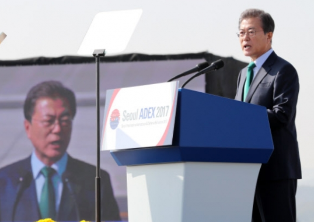 | ▲ '서울 ADEX 2017' 기념사하는 문 대통령. '서울 ADEX 2017'은 국내 최대 규모의 방산 전시회로 올해 국내외 33개국 405개 업체가 참여해 22일까지 열린다. © 세계뉴스 |