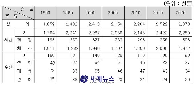 | ▲ 가락시장 내 5개년별·부류별 거래물량. |
