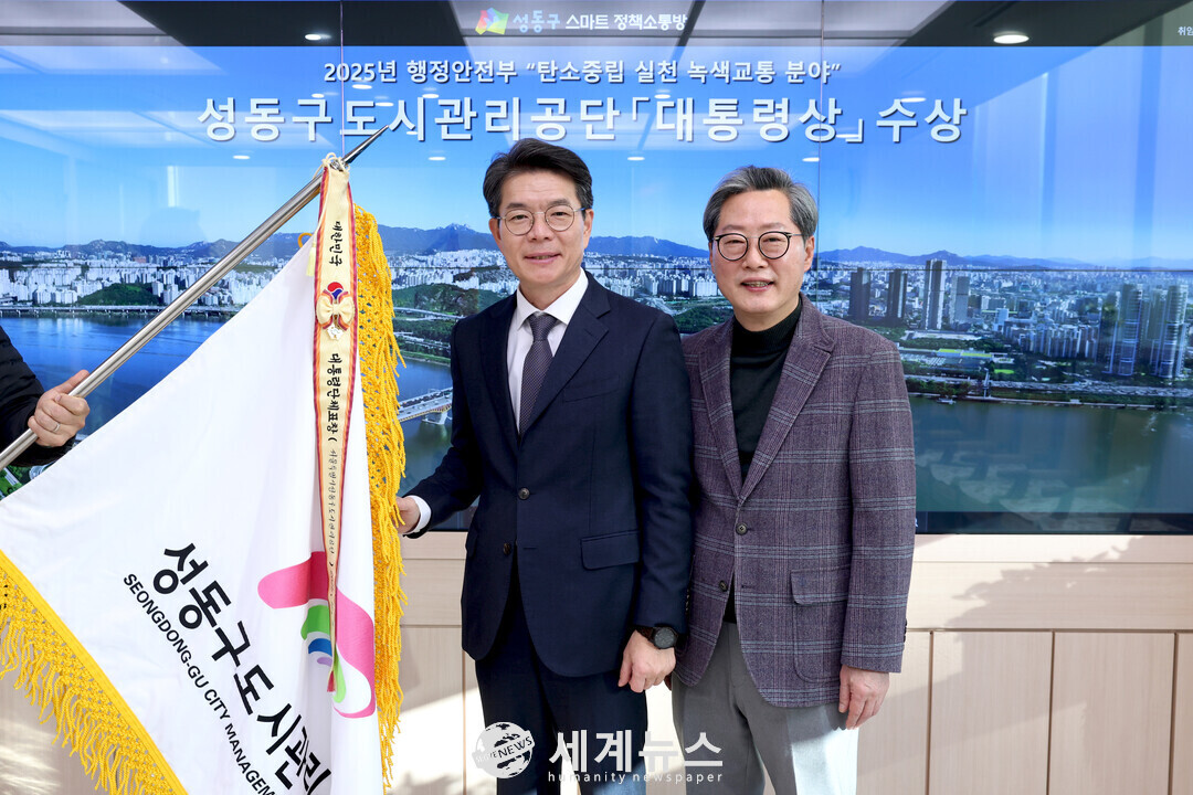 [세계뉴스 = 윤소라 기자] 성동구도시관리공단이 2025년 행정안전부 주관 친환경·탄소중립 실천 우수기관 평가에서 녹색교통분야 대통령상을 수상했다.