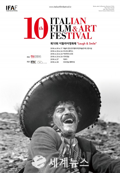[세계뉴스] 윤소라 기자 = 이탈치네마가 주최하는 제10회 이탈리아영화제가 오는 9일부터 28일까지 20일 동안 영화를 비롯한 복합문화축제로 강남역 등에서 열린다. ‘Laugh & Smile’이라는 주제로 영화 57편(단편 35편), 영화사진 300여점, 여행사진전, 토크 그리고 음악까지 다양한 행사가 진행된다.