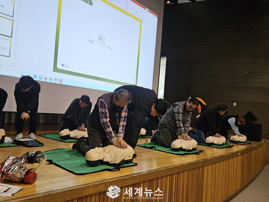 서울교통공사가 지하철 안전도우미를 상대로 심폐소생술 교육을 하고 있는 모습.