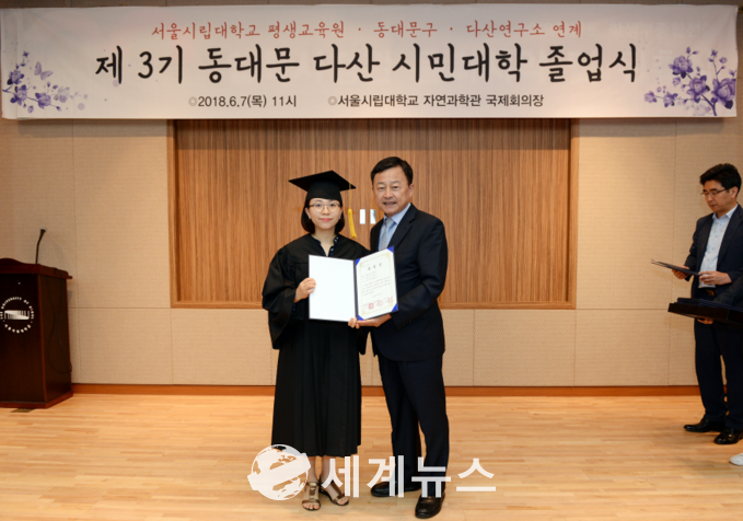 [세계뉴스] 조홍식 기자 = 동대문구가 7일 오전 서울시립대학교에서 제3기 ‘동대문 다산시민대학’ 졸업식을 거행하고 졸업생 49명에게 졸업장을 수여했다.