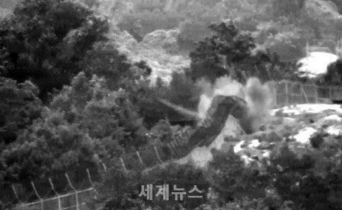 | ▲ 국방부, 비무장지대 지뢰폭발 사고 당시 열상감시장비(TOD)로 촬영된 지뢰 폭발장면. © 세계뉴스 |