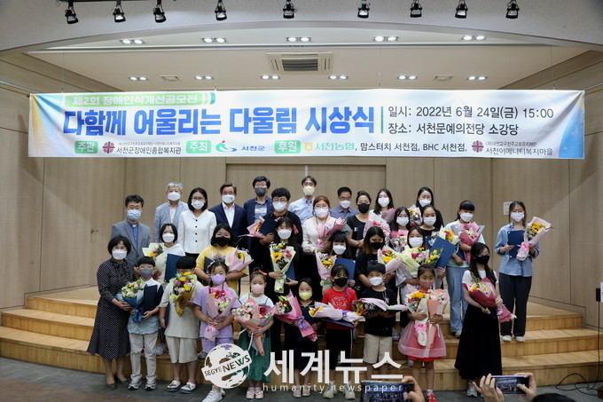 [세계뉴스 송하섭 기자] 서천군장애인종합복지관(관장 김완기)이 지난 24일 문예의전당 소강당에서 지역주민 100명이 참석한 가운데 제2회 장애인식개선공모전 ‘다함께 어울리는 다울림’ 시상식을 개최했다.