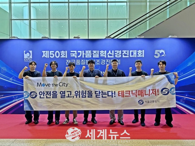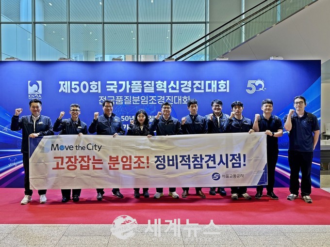 [세계뉴스 차성민 기자] 서울교통공사(사장 백호)가 ‘제50회 국가품질혁신경진대회(전국품질분임조경진대회)’에서 혁신적 품질 활동의 우수성을 인정받아 현장개선 등 6개 분야 6개 참가팀 전원이 대통령상을 수상하는 쾌거를 이뤘다. 창사 이래 역대 최고 기록이다.