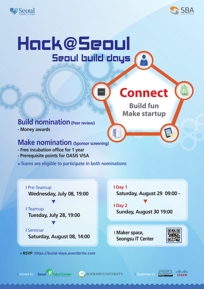 ‘Hack@Seoul Seoul Build Day’s’ 라는 이름으로 열리는 이번 행사에서는 외국인 개발자, 디자이너, 기획자 등 30여명이 내국인들과 함께 팀을 이루어 무박 2일간 창의적인 아이디어 겨룬다.