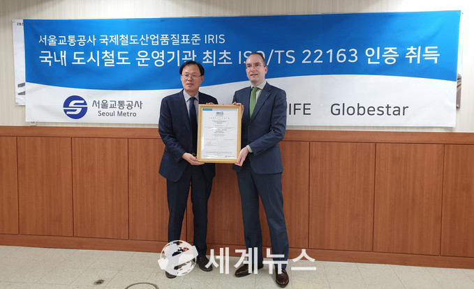[세계뉴스] 정서영 기자 = 서울교통공사(사장 김태호)는 철도차량 유지보수분야에서 국제표준화기구(ISO)의 철도산업 국제 품질경영시스템 규격인 ISO/TS 22163 인증을 취득했다고 7일 밝혔다.