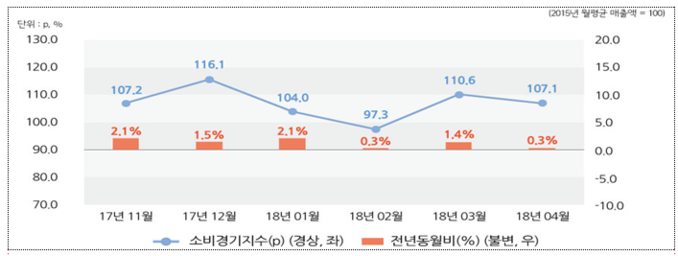 | ▲ 소매업 및 숙박·음식점업 소비경기지수 |