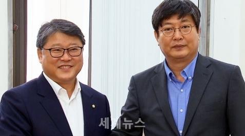 ▲ 새누리당 조원진, 새정치민주연합 이춘석 원내수석부대표가 추경안 처리에 잠정 합의 했다. © 세계뉴스 |
