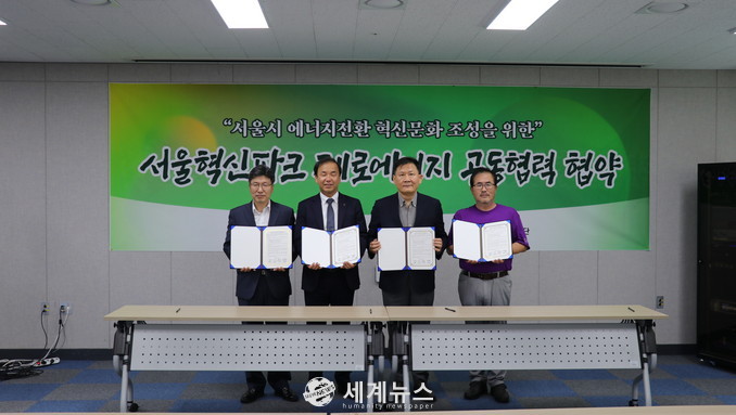 [세계뉴스] 전승원 기자 = 서울에너지공사(사장 박진섭)는 13일 서울시 은평구에 위치한 서울혁신파크에서 서울혁신센터(센터장 황인선), LG전자(대표이사 조성진), 한국에너지공단 서울지역본부(본부장 김진수) 등과 함께 서울혁신파크 건물에너지 제로화를 위한 업무협약을 체결했다.