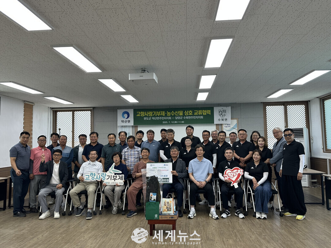 [세계뉴스 = 양경희 기자] 담양군 수북면 주민자치회와 완도군 약산면 주민자치회는 최근 고향사랑기부제 활성화와 농수산물 교류를 위한 협약을 체결했다.