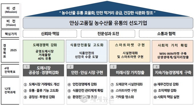 [세계뉴스 차성민 기자] 서울시농수산식품공사(사장 김경호, 이하 공사)는 대.내외적 환경 변화에 선제적으로 대응하고 지속가능한 성장을 위해 중장기 경영전략 2025를 고도화했다.