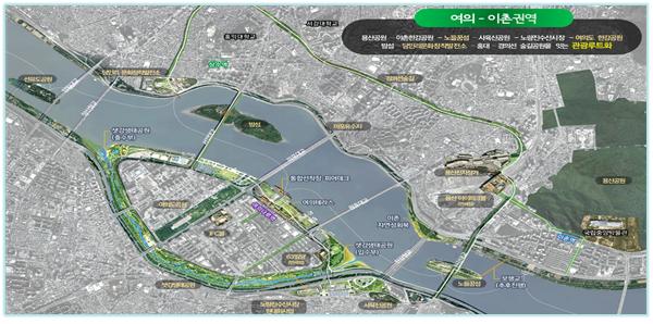 정부와 시는 한강을 7개 권역으로 구분하고 이 중 여의-이촌권역을 '우선협력거점'으로 선정해 2018년까지 개발하기로 했다.