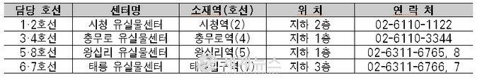 | ▲ 유실물센터 위치 및 연락처. |