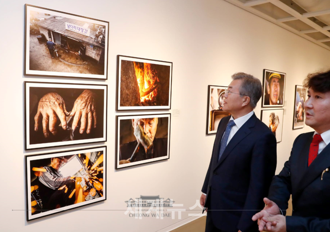 | ▲ 문재인 대통령이 2일 오후 '제54회 한국보도사진전'이 열리는 세종문화회관 미술관을 찾아 둘러보고 있다. (사진=청와대제공) |