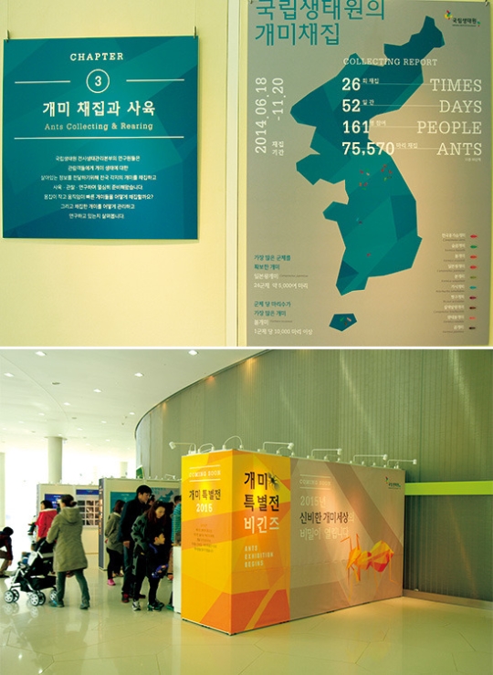 참가자는 이 전시를 통해 일본왕개미, 불개미, 광택불개미, 가시개미 등 살아 있는 개미 10여 종을 만나고 그들의 움직임을 관찰하게 된다. 이 전시는 국립생태원이 연구 진행 중인 ‘사회성 생물 집단 유전 분석에 관한 연구’ 등 그동안 집군 생활을 하는 개미의 생태를 연구한 과정과 결과물의 일단이다. 특정 분야의 연구가 연구로 끝나지 않고 일단 대중, 어린이들의 일상과 만나게 하는, ‘국립연구기관’ 활동의 전형을 보여주는 것이다.