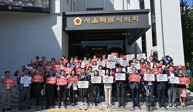 [세계뉴스 윤소라 기자] 8일 서울시의회 본관 앞에서 국민의힘 의원 76명은 학생인권조례 폐지조례안의 교육위원회 상정을 촉구하는 피켓시위를 진행했다.