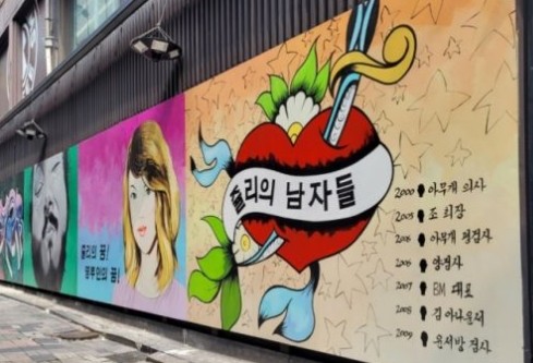 | ▲ 서울 종로구 관철동 종로 12길 한 건물 벽면에 ‘쥴리의 남자들’ 벽화 등장. |
