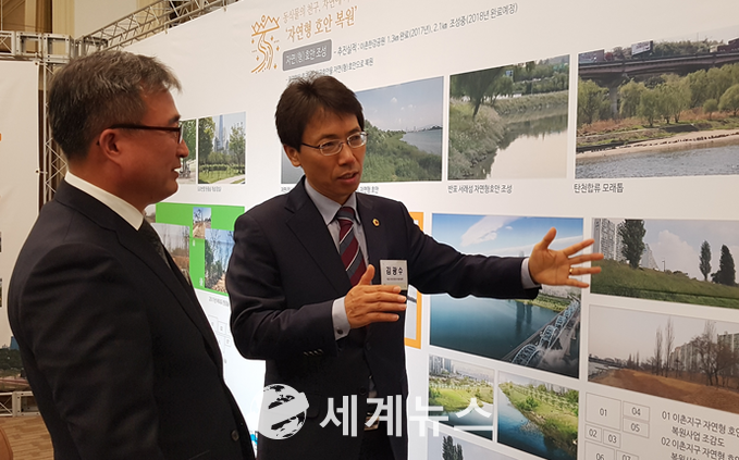 | ▲ 김광수 서울시의원(오른쪽)이 한강 관련 사업 현장을 둘러보고 있다. |