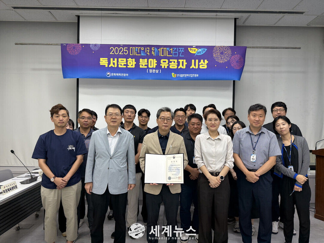 [세계뉴스 = 조홍식 기자] 성동구(구청장 정원오) 산하 성동구도시관리공단(이사장 김종선)이 문화체육관광부 주관 제31회 '2025 대한민국 독서대전'에서 '독서문화진흥 유공 우수기관'으로 선정되며 장관 표창을 수상했다.