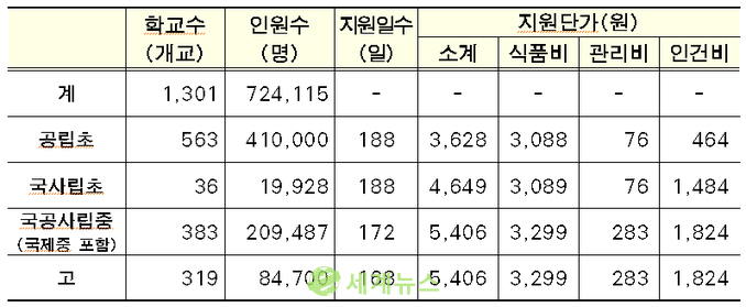 | ▲ 서울 시내 고등학교 3학년 84,700명 무상급식 지원. |